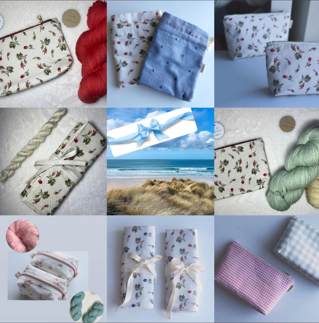 Junko has made six gorgeous pieces, which range from Small Zippered Pouches to Project Bags. Below you will find each piece, along with its description. To make your purchase, you will first choose the quantity and the type(s) of yarn, and then you will select the fabric you would like. During checkout, you will put in the Notes to Order Section, which color way and base(s) of yarn you will be purchasing.