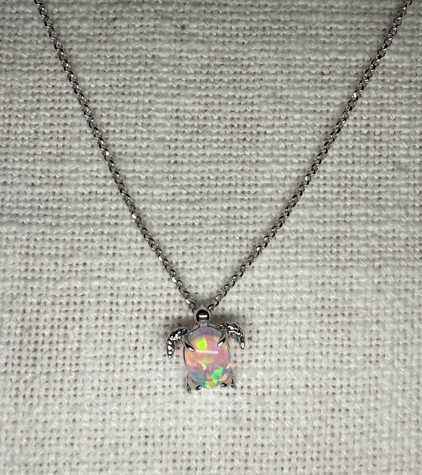 Our Opal Sea Turtle Necklace and Earring Set is an absolutely gorgeous set of jewelry! The necklace is set on a 16” Sterling Silver Cable Chain with a 2" extender. Our Sea Turtle Pendant and Earrings are each securely set in Sterling Silver prongs, to protect their fragility. Opals have a Mohs hardness rating of 5.5 to 6.5, which means that they are relatively soft and can be scratched by other minerals.
